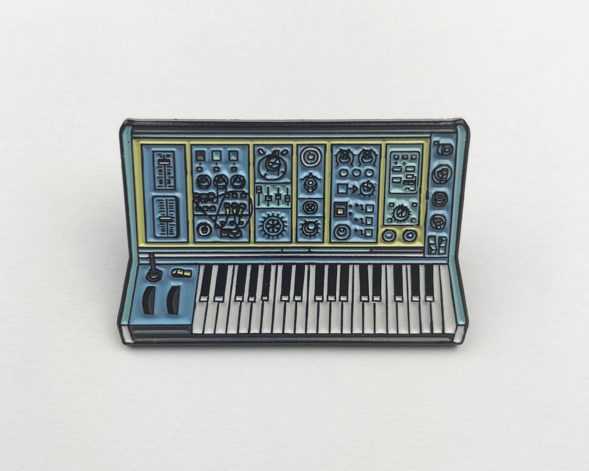 Our friend Doug Keith sketched up this original design after spending a day in a friends studio. His dream synth is now available... as an enamel pin.